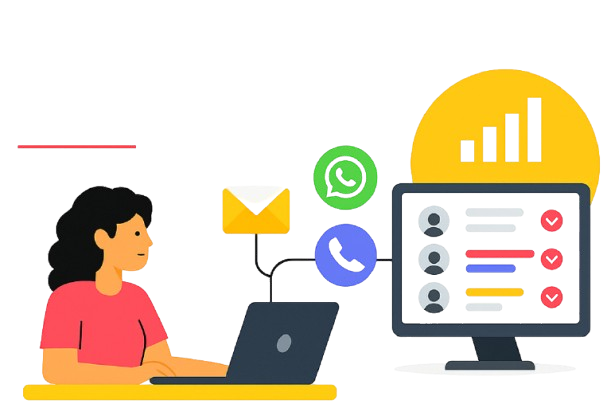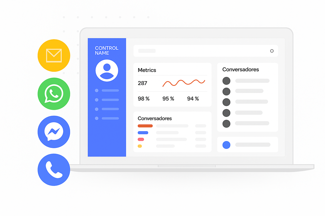 Centraliza correos, WhatsApp, llamadas, chatbots web, redes sociales y más en un solo hub.